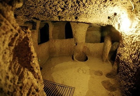 있는 정도의 좁게 되어 있습니다. 이 지하 도시는 주거지로 사용하던 방들, 부엌, 교회, 곡물 저장소, 동물 사육장, 포도주 저장실, 성찬 및 세례식을 갖는 장소, 신학교까지 지하에 완전히 갖추었습니다.