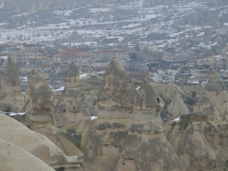 부드러운 바위는 깎이어서 지구가 아닌 외계에 어느 혹성을 연상 하도록 괴상한 형태의 걸작을 만들어 놓았습니다. 영화 스타워즈에서도 이곳을 배경으로 촬영했다고 합니다. 카파도키아 지방은 우치사르 괴뢰메 데린쿠유 카이마크로 등으로 나누어져 있고 괴뢰메가 대부분 여행객들이 방문하는 중요한 거점입니다. 이 지역은 실크로드의 길목으로서 옛날부터 많은 사람들이 왕래하였고 그리스도교도 이 지역에 전파 되였는데 초기 로마 시대에 그리스도가