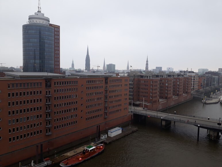 손흥민 선수가 세계적 축구 선수로 성장한 함부르크 SV의 연고지인 함부르크 시내 전경(멀리 복음주의 5대 교회 첨탑이 보인다)